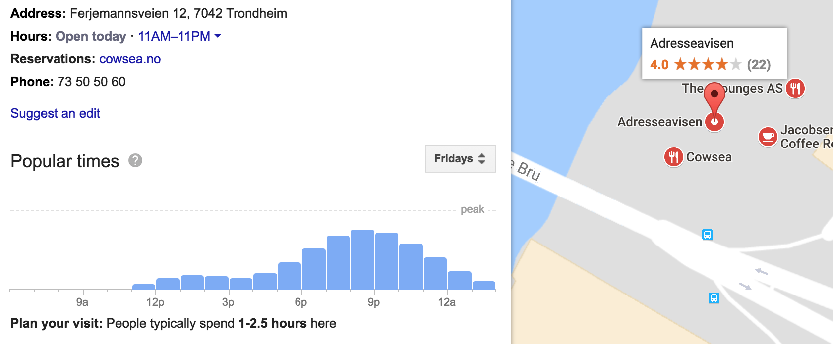 explanation about "visit data": Popular times and visit duration are shown for your business if it gets enough visits from these users.